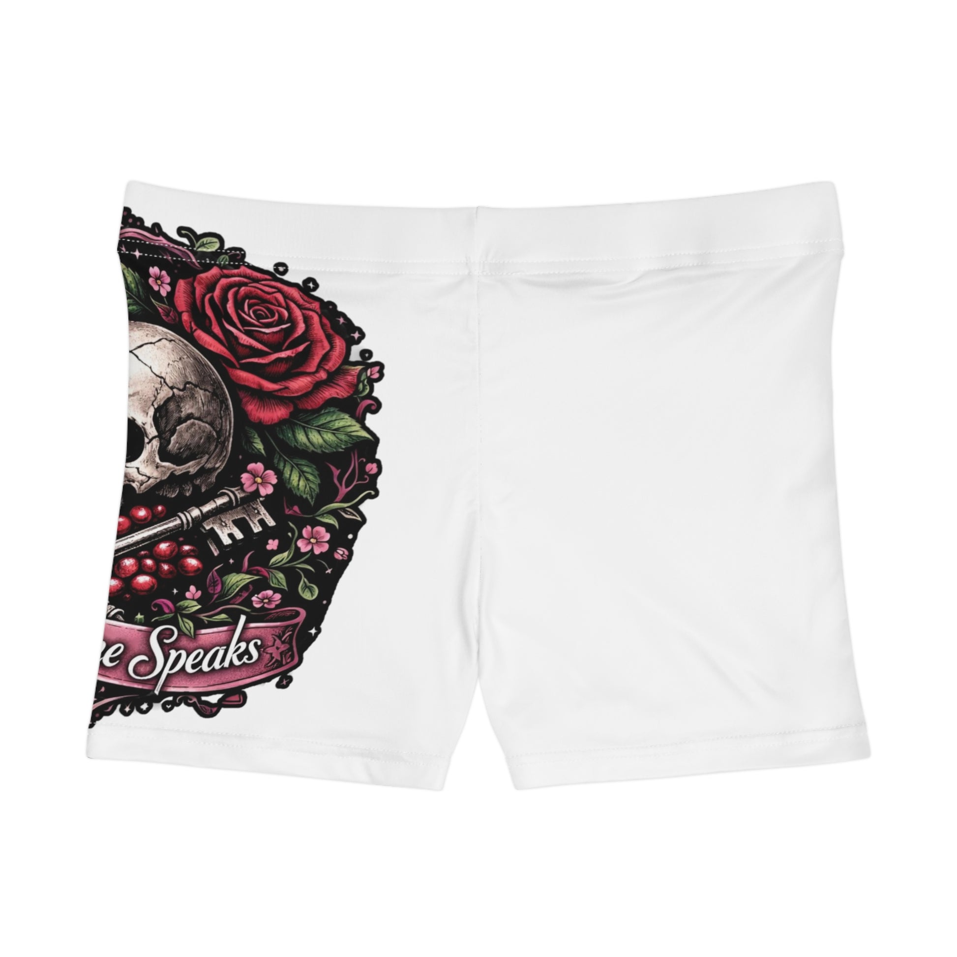 Persephone Skull & Pomegranate Women's Shorts — Gothic Floral Summer Activewear